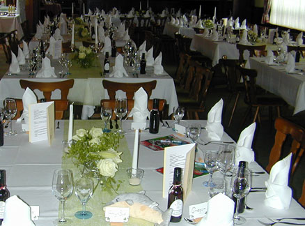 Unser Restaurant bietet Platz für 80 Personen. Daneben steht Ihnen unser großer Saal   für Familien-, Betriebs- und sonstigen Feiern zur Verfügung